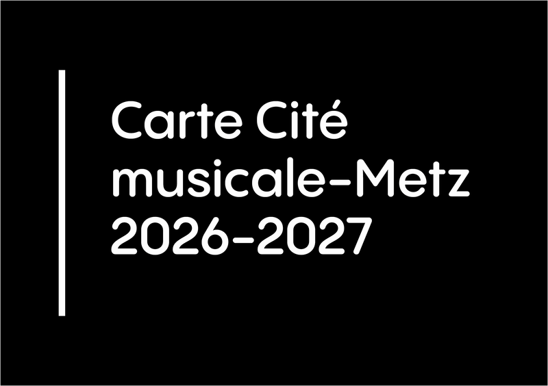 Vous êtes spectateur régulier de la Cité musicale-Metz, mais vous ne souhaitez ou ne pouvez pas planifier vos sorties à l’avance ? La Carte Cité musicale-Metz est faite pour vous ! Elle vous permet de bénéficier de réductions de 15 à 35% sur les spectacles de la saison 2026/2027 à l’Arsenal, à la BAM et aux Trinitaires (hors programmation jeune public, Cat. 4 à l’Arsenal, et productions extérieures). Accessible à tous, la Carte Cité musicale-Metz offre de nombreux avantages tout au long de la saison : offres promotionnelles, rencontres et moments privilégiés, etc.